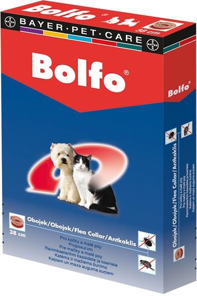 Působí proti blechám u koček 4 měsíce u psů 5 měsíců. Proti klíšťatům 10 týdnů jak u psů tak koček. Lze použít od 3 měsíců věku.Prášek účinné látky propoxur se postupně přes póry obojku dostává na srst zvířete. Působení obojku: Prášek účinné látky propoxur se postupně přes póry obojku dostává na srst zvířete.Část se uchytí na kůži zvířete, kterou chrání před útokem blech a klíšťat, část padá na zem kde brání přežívání blech a jejich vývojových stádií. Kudy zvíře projde, pracuje jako práškovací letadlo - tím chrání sebe i své okolí lehce, jednoduše a dlouhou dobu. Blechy i klíšťata jsou usmrcena při pouhém kontaktu se psem nebo kočkou, to znamená, že se nestihne ani zakousnout, proto nemůže dojít k alergizaci ani k přenosu nebezpečných nemocí. Na Vaše miláčky se nedostanou ani blechy od zablešeného kamaráda, který nemá to štěstí nosit antiparazitární obojek od Bayera. Psi i kočky s obojkem Bolfo se můžou koupat, po uschnutí je obojek znovu účinný. Pokud je obojek zamaštěný - není na povrchu pudrově bílý je potřeba ho omýt, aby znovu plně působil.