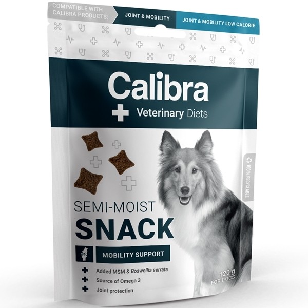 Receptura Mobility Support Semi-moist Snack je kompatibilní také s veterinární dietou Calibra VD Dog Joint & Mobility a Calibra VD Dog Joint & Mobility Low Calorie.