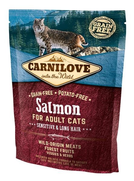 Carnilove Salmon for Adult Cats Sensitive & Long Hair- holistické krmivo pro dospělé kočky s citlivým zažíváním a pro dlouhosrsté kočky.