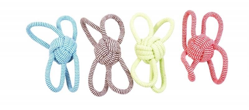 Hračka pro psa - pevně spletená a zároveň měkká lana do tvaru míčku s poutky. Hračka je vhodná k aportování a přetahování.