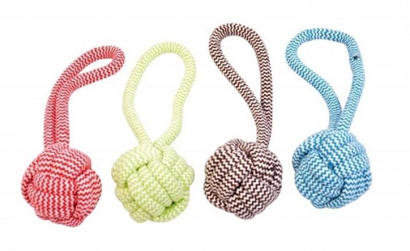 Hračka pro psa - pevně spletená a zároveň měkká lana do tvaru míčku s poutkem. Hračka je vhodná k aportování a přetahování.