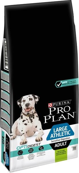 PRO PLAN Large Adult Athletic Sensitive Digestion s vysokým obsahem jehněčího. Kompletní krmivo pro dospělé psy velkých plemen atletického typu s citlivým zažíváním.