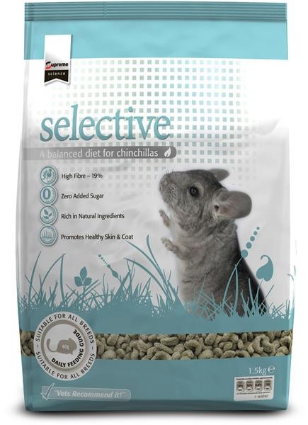 Krmivo Supreme®science selective Chinchilla zajišťuje, že si vaše činčila nebude vybírat z krmiva své oblíbené kousky tak, jako to může dělat u nehomogenních krmných směsí. Zde máte jistotu, že činčila z krmiva získá všechno, co může krmivo poskytnout pro její zdraví a pohodu.