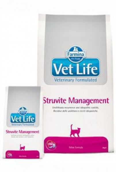 Vet Life Struvite Management - feline formula Krmivo pro zvláštní účely výživy pro kočky s opakovaně se vyskytujícími močovými kameny a na léčbu idiopatické cystitidy. Způsob léčby: Maximální délka dietetické léčby je šest měsíců. Doporučuje se vyhledat názor veterináře před tím, než vaše kočka začne krmivo užívat a před tím, než se prodlouží doba užívání krmiva. Podávejte krmivo v množstvích uvedených v tabulce. Denní dávky se mohou lišit podle plemene, prostředí, množství pohybu a povahy. Množství uvedená v tabulce jsou přibližná. Krmnou dávku je potřeba přizpůsobit s ohledem na udržení optimální hmotnosti zvířete. Denní dávka může být rozdělena do dvou nebo více částí. Zvíře musí mít po celý den k dispozici misku s vodou. Složení: Kukuřičný lepek, sušené kuřecí maso, oves, živočišný tuk, hydrolizované živočišné bílkoviny, sušená celá vejce, rybí olej, sušené ryby, chlorid draselný,,rostlinný olej, uhličitan vápenatý, fruktooligsacharidy, mannanoligosacharidy, chlorid sodný, glukosamin, extrakt z afrikánu (zdroj luteinu). Okyselovač moči: chlorid amonný (3,5 g/kg), DL-metionin (2,5g/kg) Aditiva na 1 kg: Výživové přísady: Vitamín A 15000 MJ, Vitamín D3 600 MJ, Vitamín E 550 mg, Vitamín C 250 mg, Niacin 125 mg, kyselina pantothenová 42 mg, Vitamín B2 17 mg, Vitamín B6 7 mg, Vitamín B1 8 mg, Vitamín K 1,3 mg, Vitamín H 1,3 mg, kyselina listová 1,3 mg, Vitamín B12 0,08 mg, cholin 2500 mg, betakaroten 1,5 mg, oxid zinečnatý 108 mg, monohydrát síranu zinečnatého 120 mg, monohydrát síranu manganičitého 180 mg, monohydrát síranu železnatého 44 mg, uhličitan železnatý 60 mg, pentahydrát síranu měďnatého 42 mg, anhydrát jodidu vápenatého 2,4 mg, selenitan sodný 0,3 mg, taurin 2500mg, DL-metionin 5000 mg, L-lyzin HCI 1000 mg, L-karnitin 250 mg. Technologické přísady: antioxidanty. Regulátor kyselosti: chlorid amonný 3500 mg Analytické složky: Hrubý protein 33%, čisté tuky a oleje 16,5%, hrubá vláknina 1,2%, popel 6,6%, vápník 0,85%, fosfor 0,7%, sodík 0,4%, draslík 0,65% hořčík 0,06%, chlor 0,95%, síra 0,4%, Omega-6 mastné kyseliny 3,2%, Omega-3 mastné kyseliny 0,4%, EPA 0,1%, DHA 0,15%. Energická hodnota: ME 3842 kcal/kg - 16,08 MJ/kg. Skladujte na chladném a suchém místě. Vyrobeno 18 měsíců před datem spotřeby vytištěném na balení. Net hmotnost, datum spotřeby, šarže a registrační číslo je uvedeno na zadní části obalu. Výrobce: FARMINA PET FOODS DOO, Save Kovačeviča bb, 22320 Indjija, Srbija Distributor: NOVIKO s.r.o., Palackého třída 163, 612 00 Brno